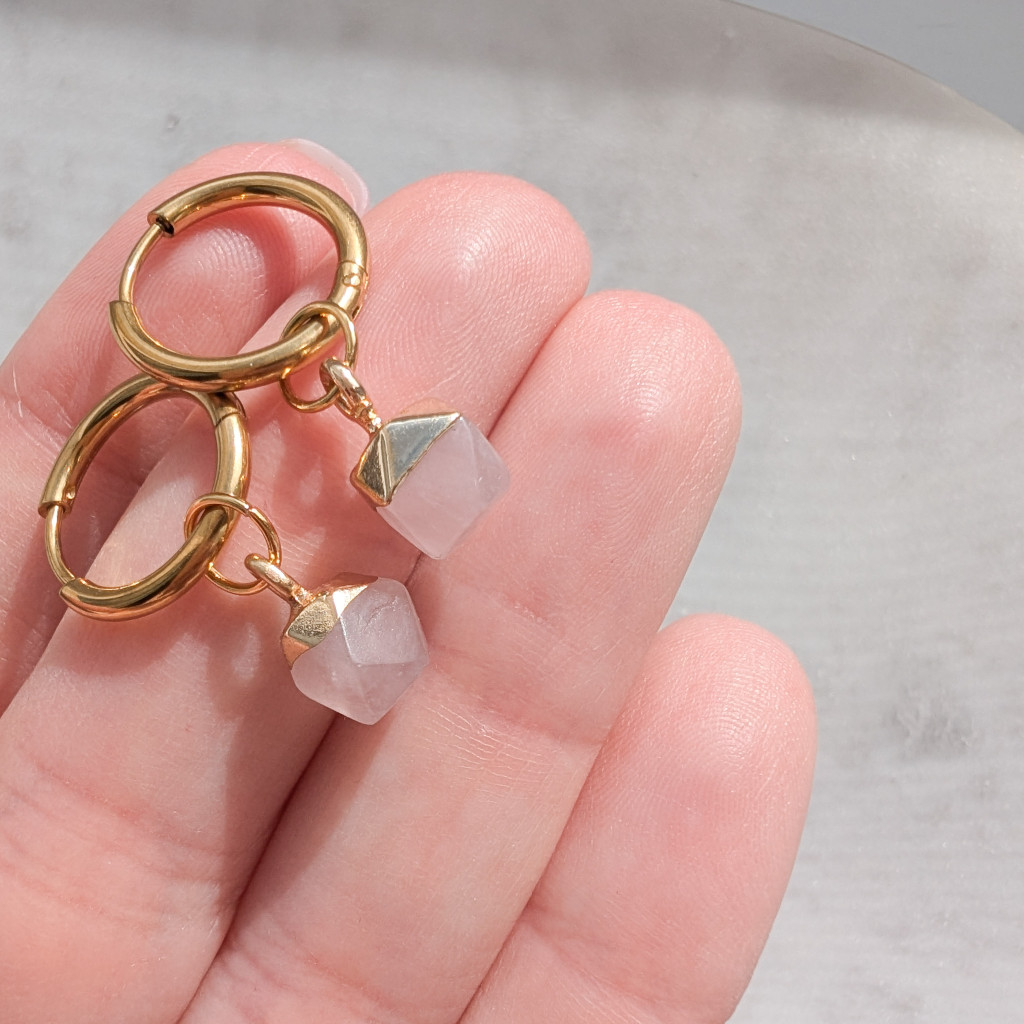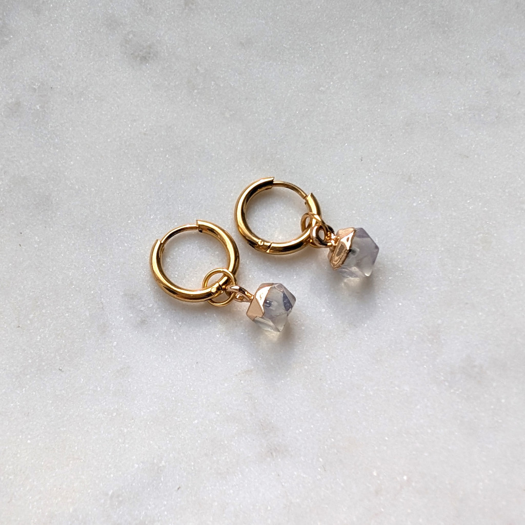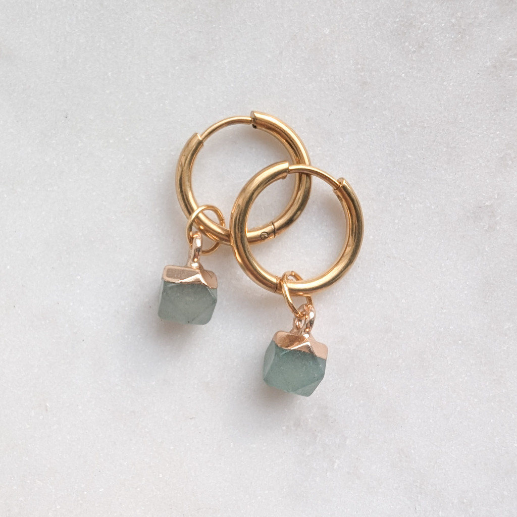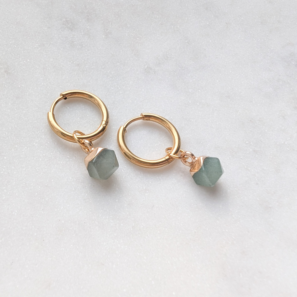Pici, sokszög alakú ásvány függős karika fülbevaló.