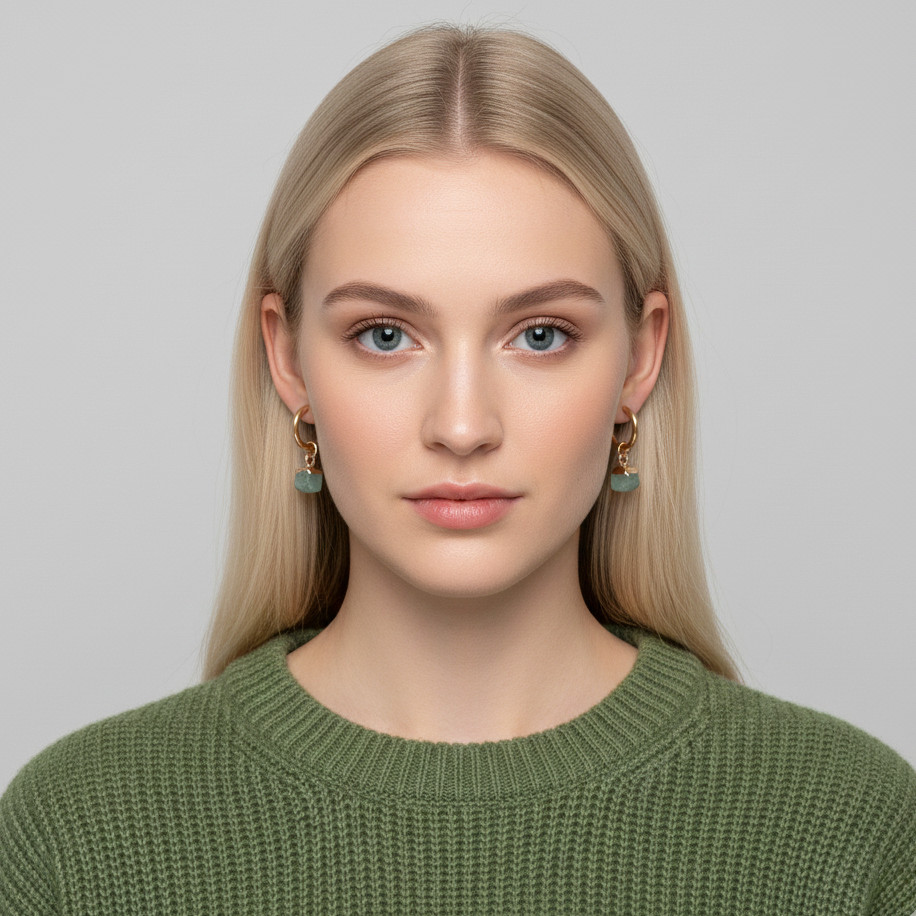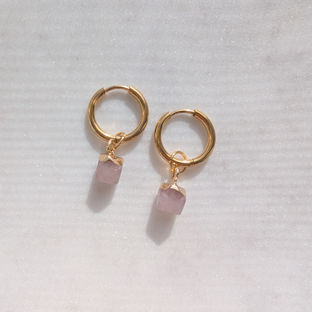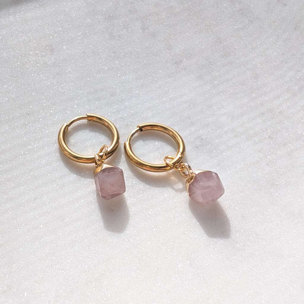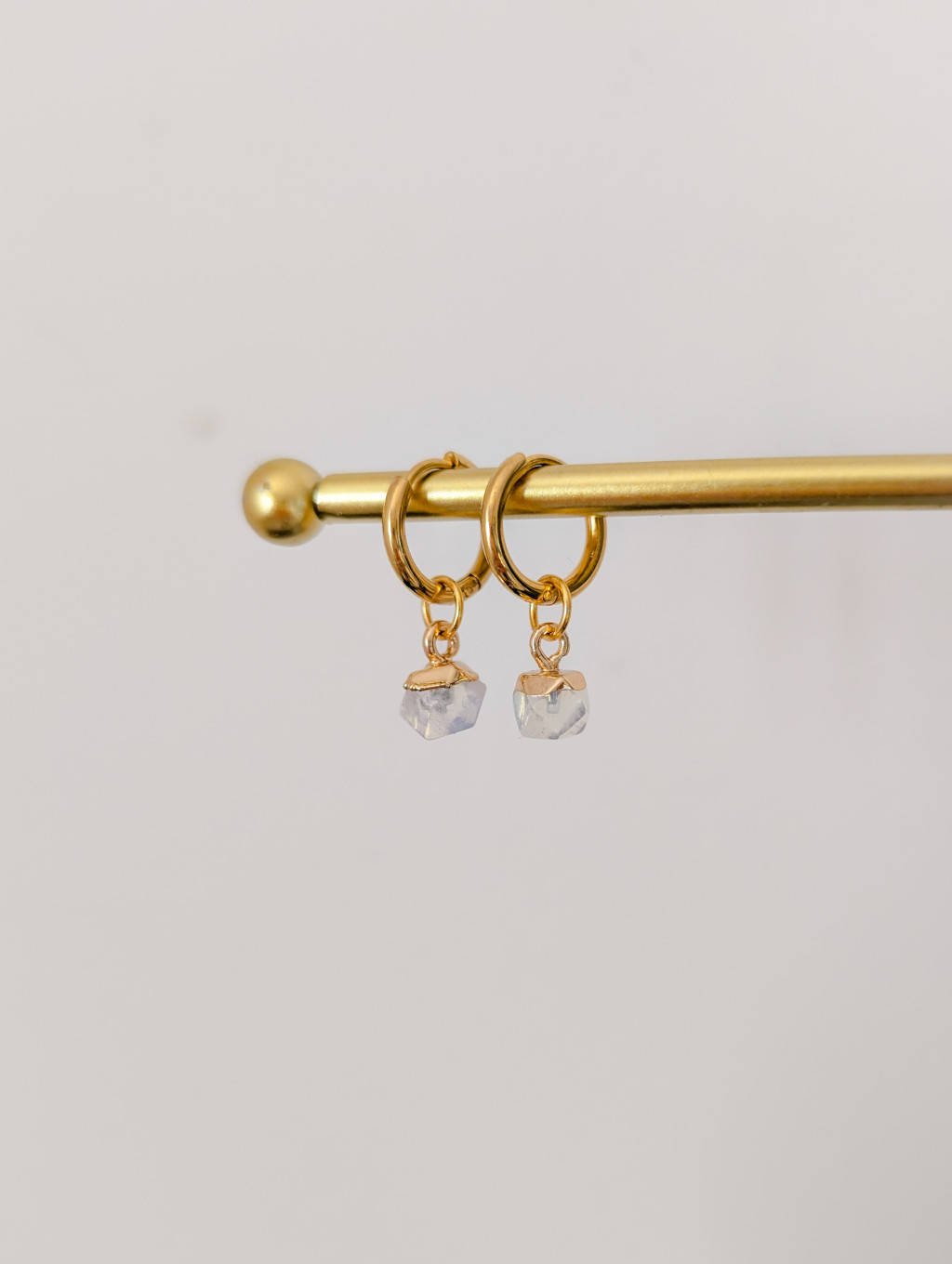 Pici, sokszög alakú ásvány függős karika fülbevaló.