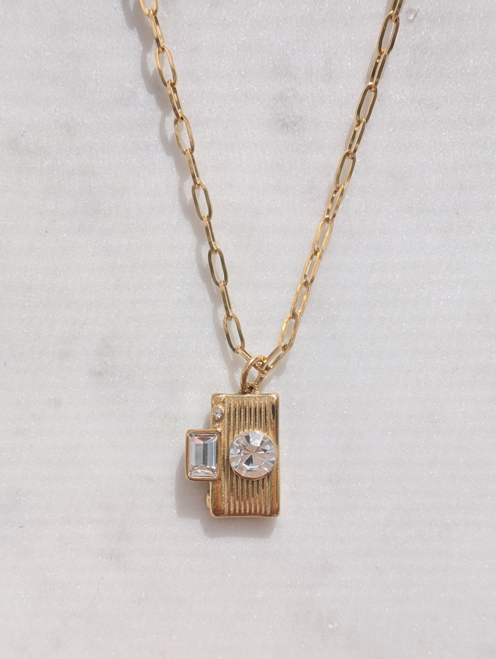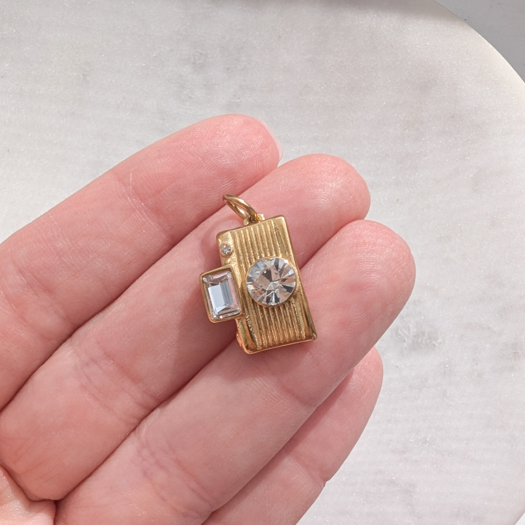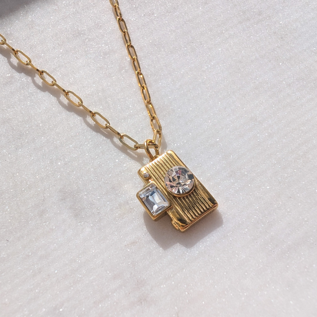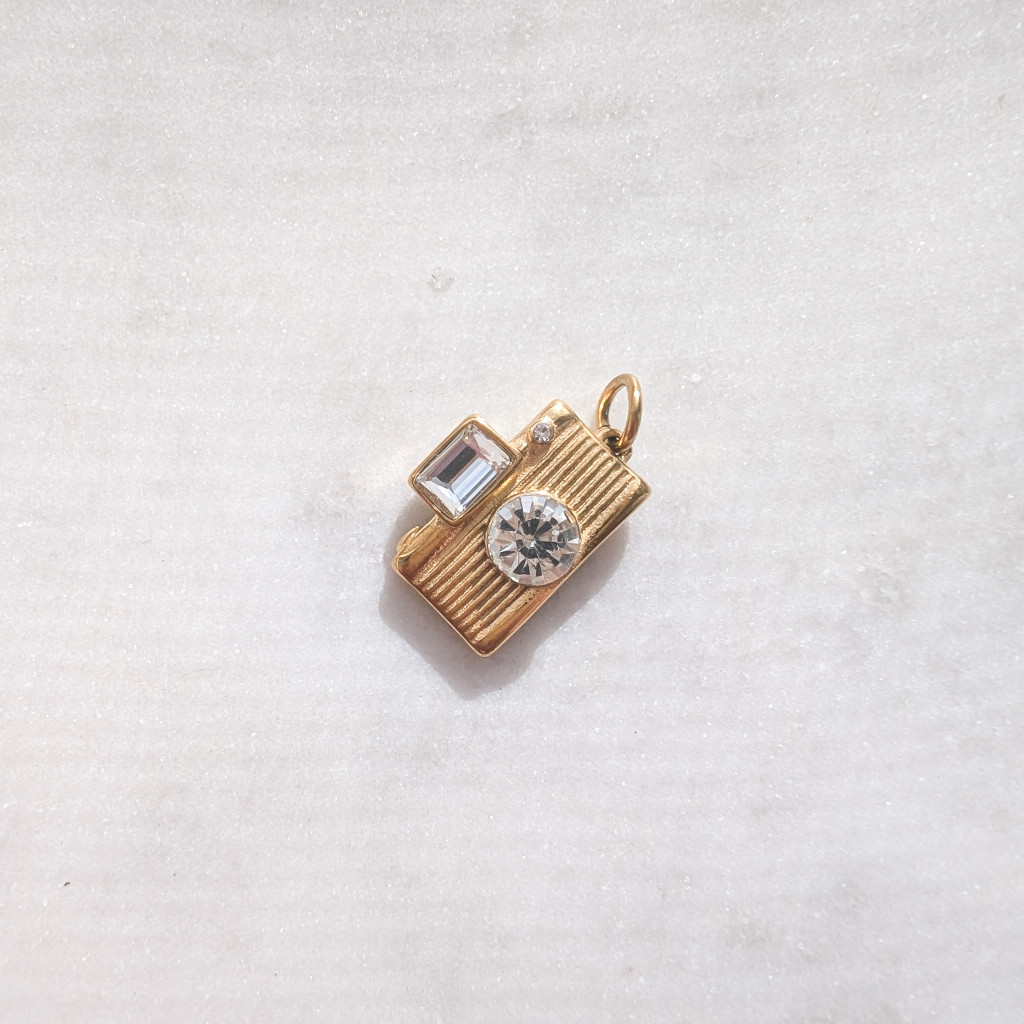Fényképezőgép formájú, nemesacél medál cirkóniakővel, melyhez többféle lánc közül választhatsz.