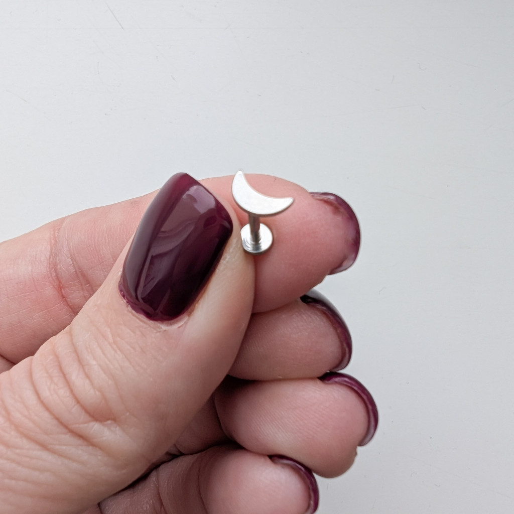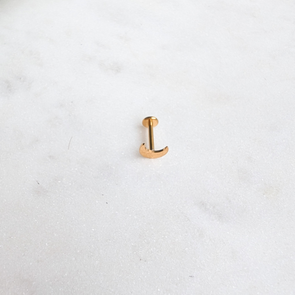 Pici, hold alakú piercing, lapos hátsó résszel. A hold részén található a csavarozás.