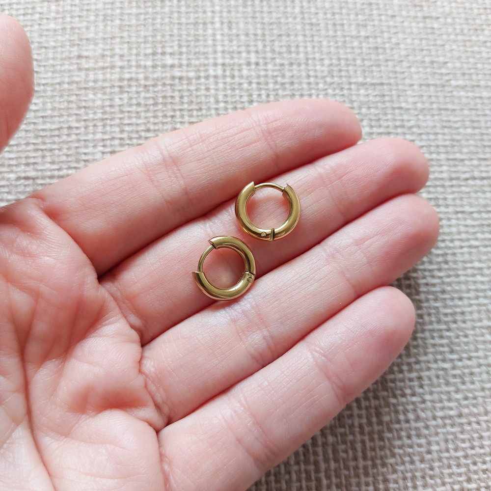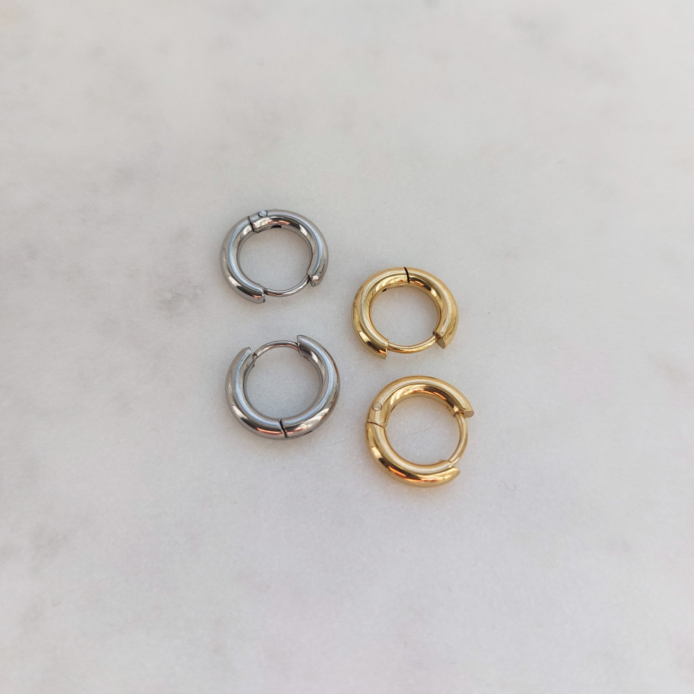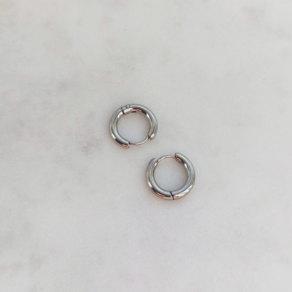 Minimalista karika fülbevaló, 8 mm átmérőjű, antiallergén nemesacélból (rozsdamentes acél). Csatos, könnyen betehető, kényelmes viselet. Vízálló, hosszan tartó darab.