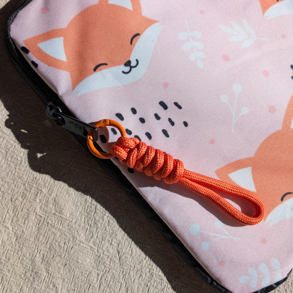 Cipzárdísz: lecsatolható hevederrel, paracord zsinórból