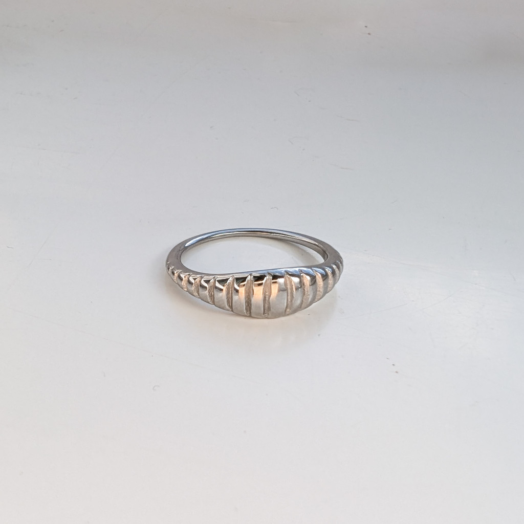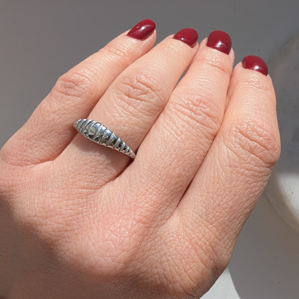 Vékony, átlós mintázatú gyűrű vízálló nemesacélból. Minimalista, modern darab, mellyel feldobhatod hétköznapi szettjeid.