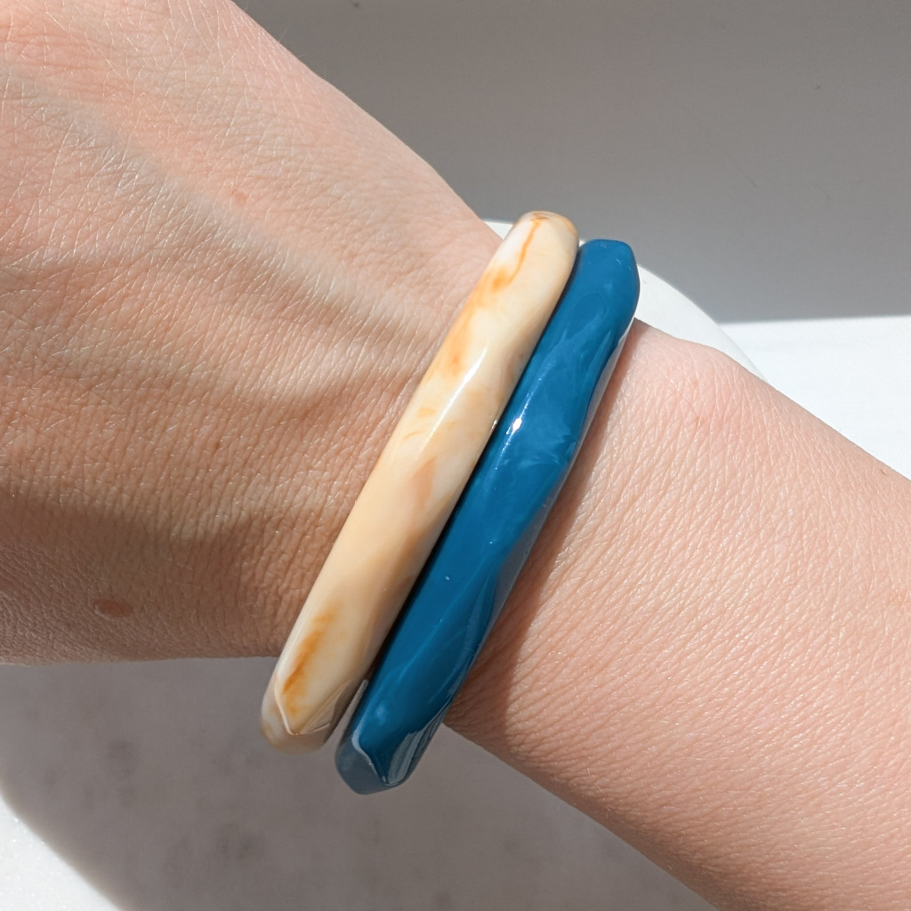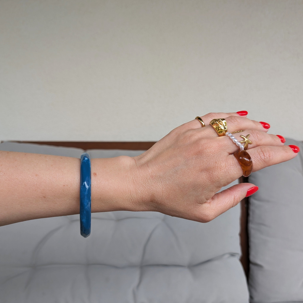Az izgalmasabb összhatás érdekében kombináld más akril karperecekkel!